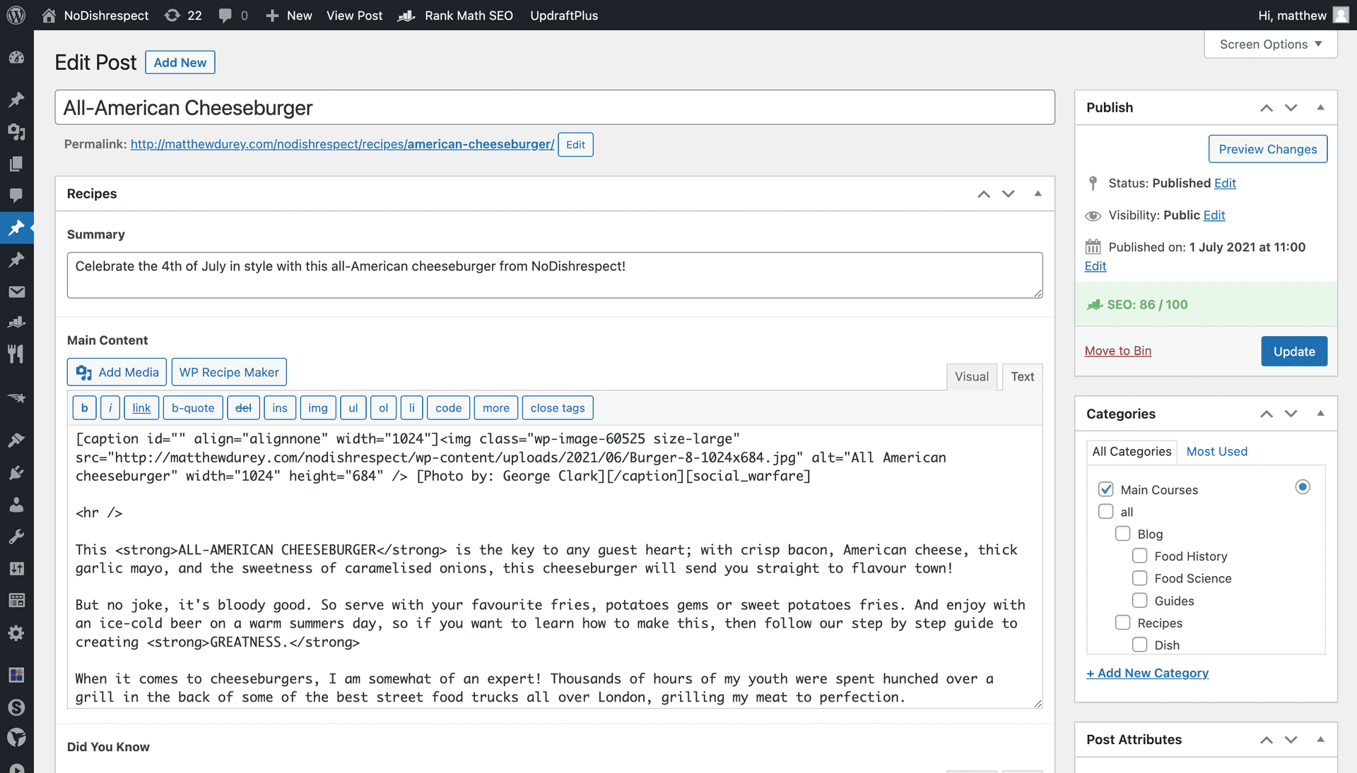 As NoDishrespect is a food blogging website it was important to make sure that not only did the recipes have high quality images, but that they were also easy to upload and follow.